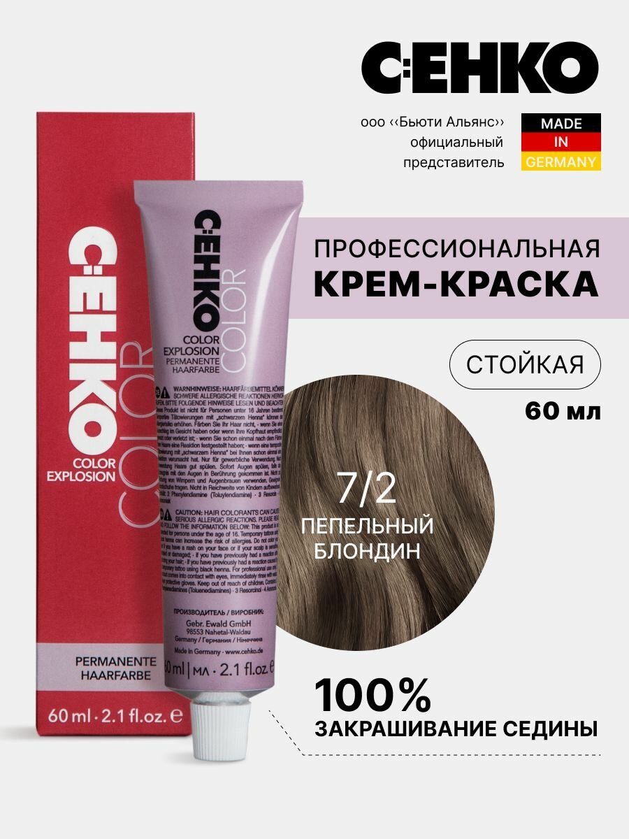 Купить Профессиональная краска для волос 7/2 Пепельный блондин, холодный, русый, стойкая, перманентная, для седых волос, 60 мл, C:EHKO COLOR EXPLOSION