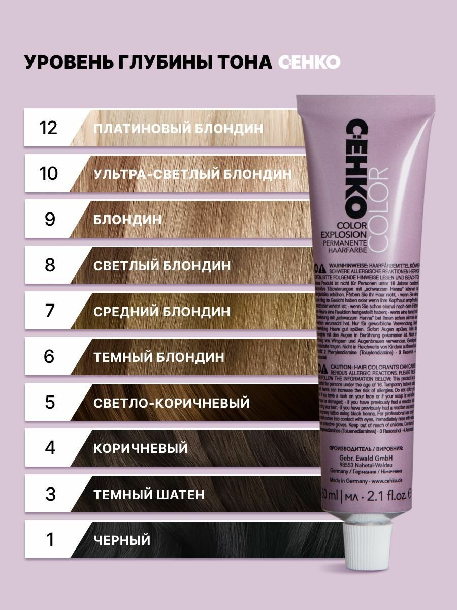 Профессиональная краска для волос 9/2 Яркий пепельный блондин, светлый, холодный, стойкая, для седых волос, 60 мл, C:EHKO COLOR EXPLOSION