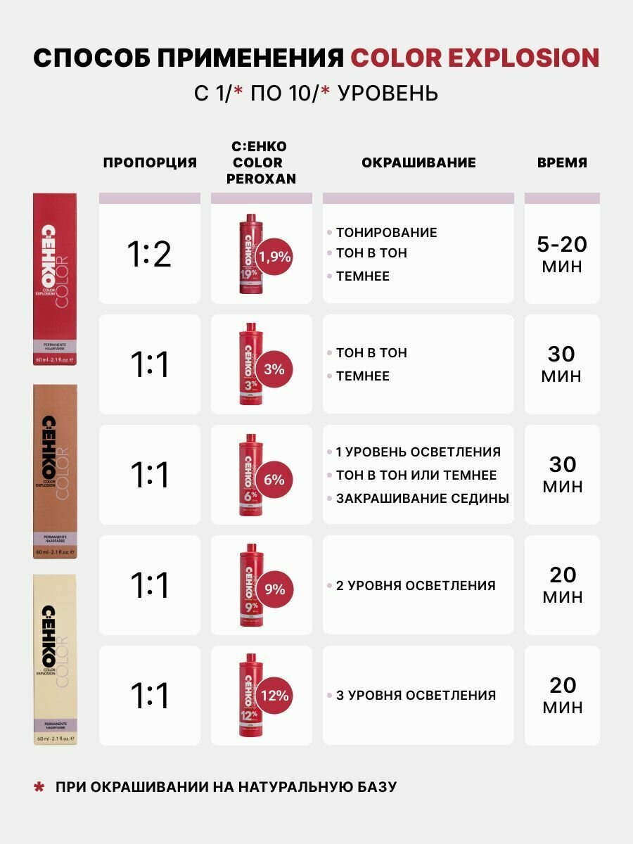Профессиональная краска для волос 1/0 Черный, темный, стойкая, перманентная, для седых волос, 60 мл, C:EHKO COLOR EXPLOSION