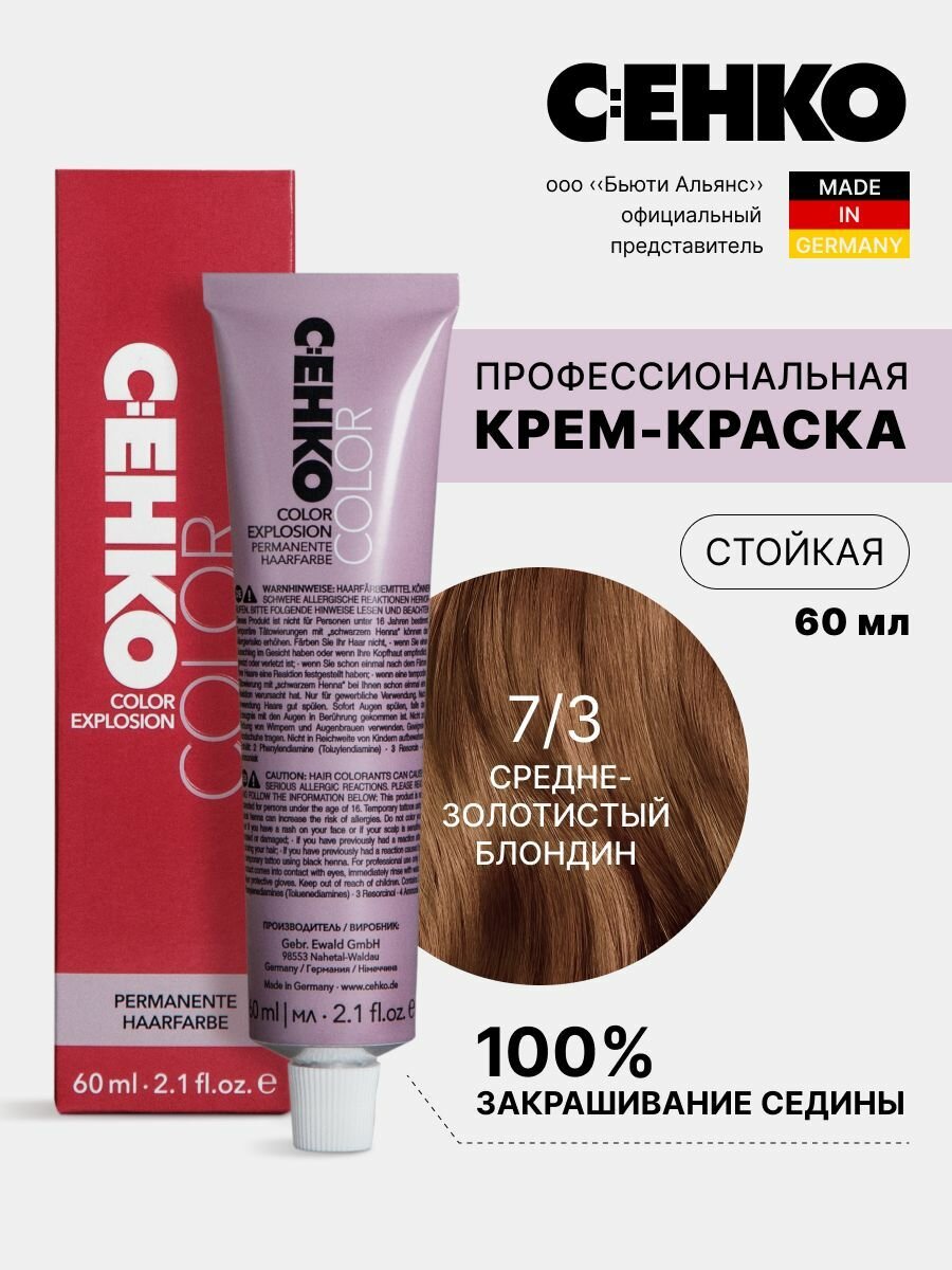 Купить Крем-краска C:EHKO №7/3, для волос, средне-золотистый блондин, 60 мл
