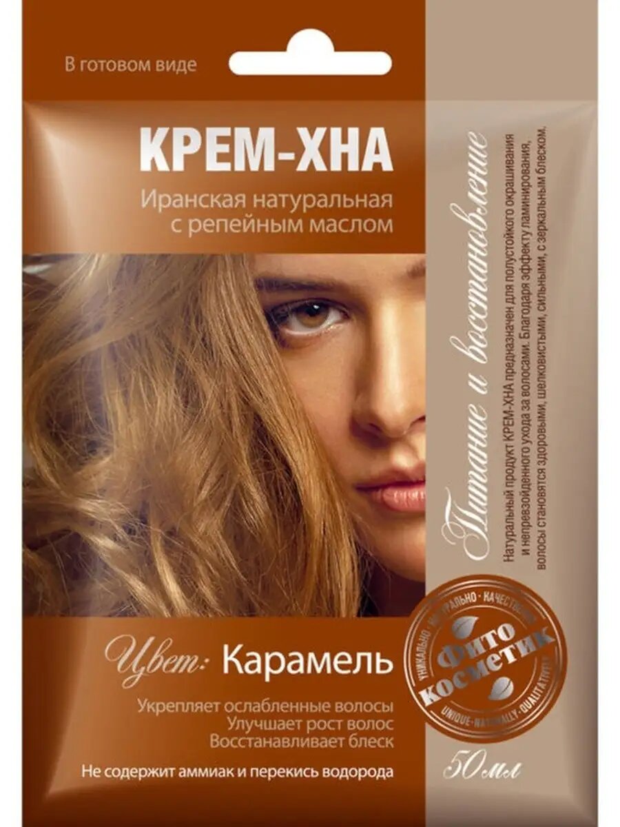 Купить Крем-хна Фитокосметик в готовом виде Карамель с репейным маслом 50 мл 1 шт