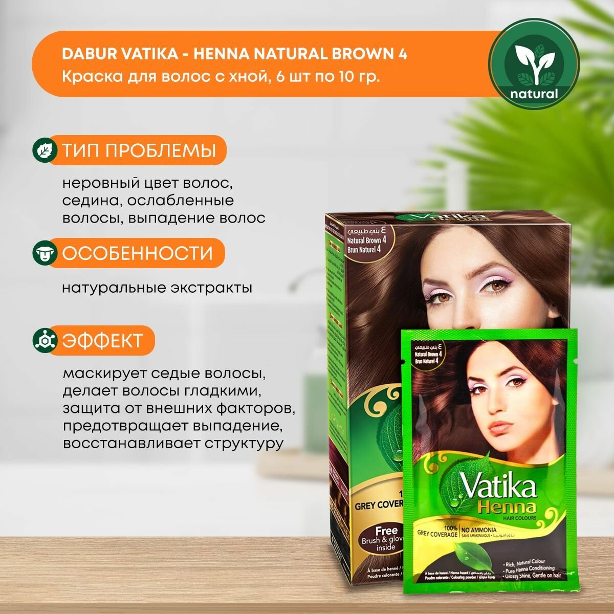 Dabur Хна для волос Vatika Henna Hair Colours Natural Brown коричневая, 20 шт. по 10 г