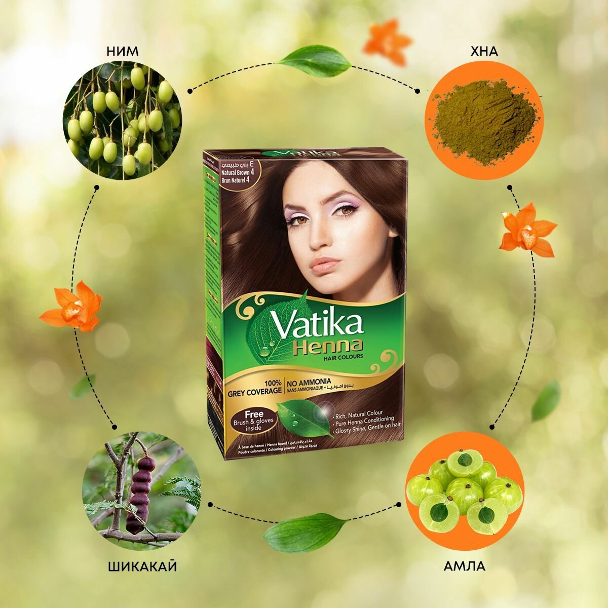 Хна для волос Vatika Henna Hair Colours Natural Brown (коричневая) Vatika 1916759 .