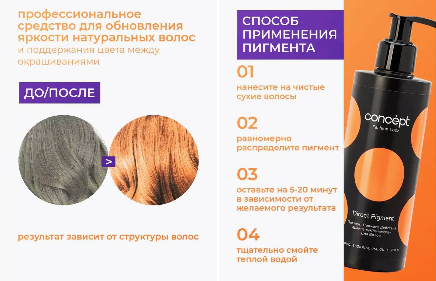 Concept, Шампань пигмент прямого действия Fashion Look, 250мл