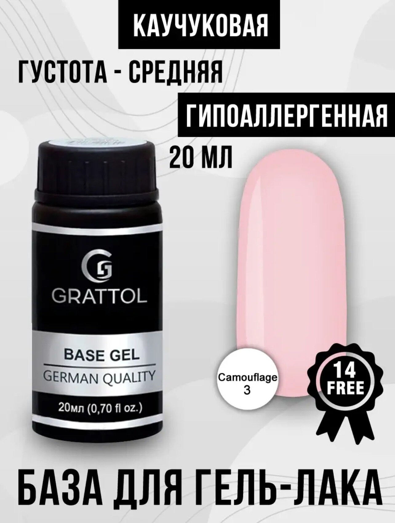 Купить Grattol Rubber Base Camouflage 03 - База для ногтей камуфлирующая, средней плотности, цвет молочно-розовый, 20 мл