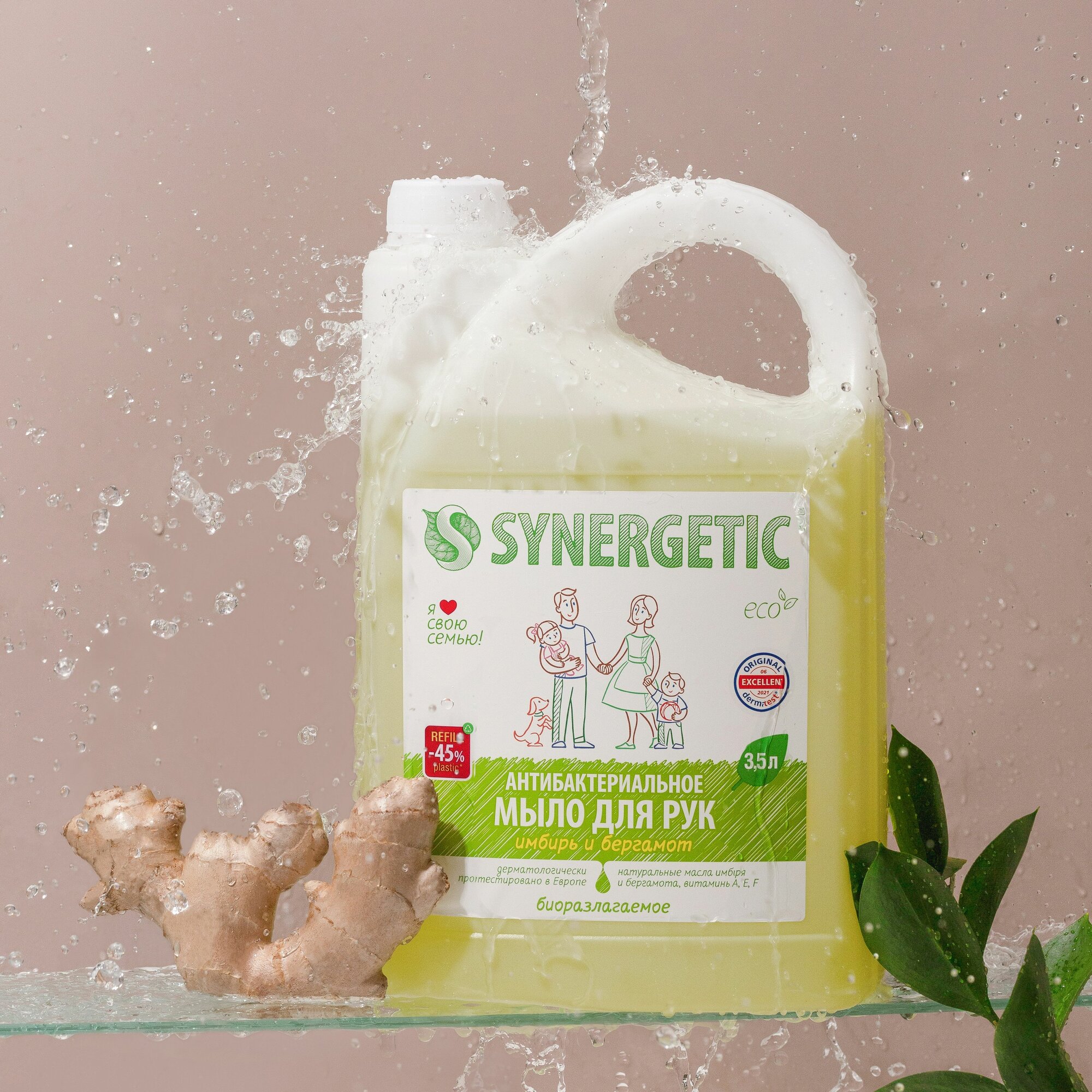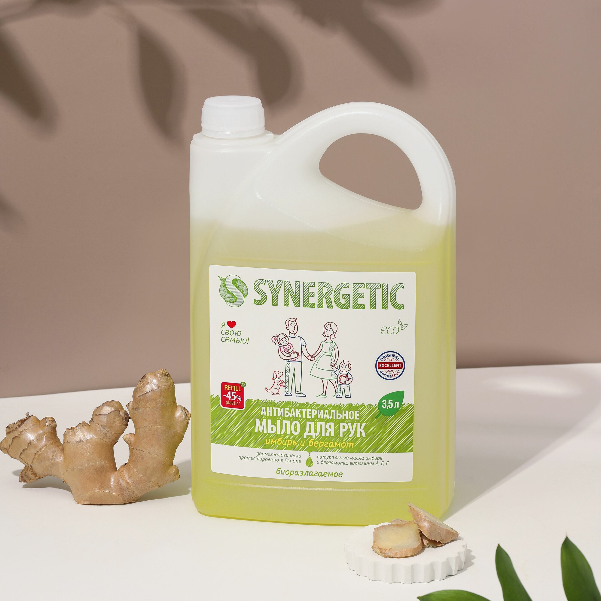 Мыло жидкое антибактериальное 3.5 л SYNERGETIC "Имбирь и бергамот", комплект 2 шт., 105202