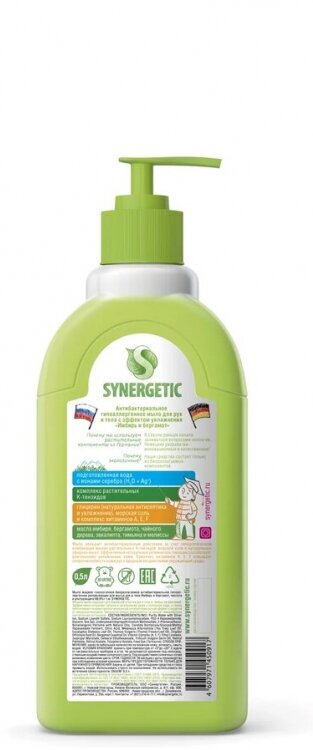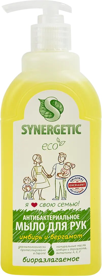 СохранитьSYNERGETIC антибактериальное мыло 0.5 л для рук Имбирь и бергамот биоразлагаемое интересное: