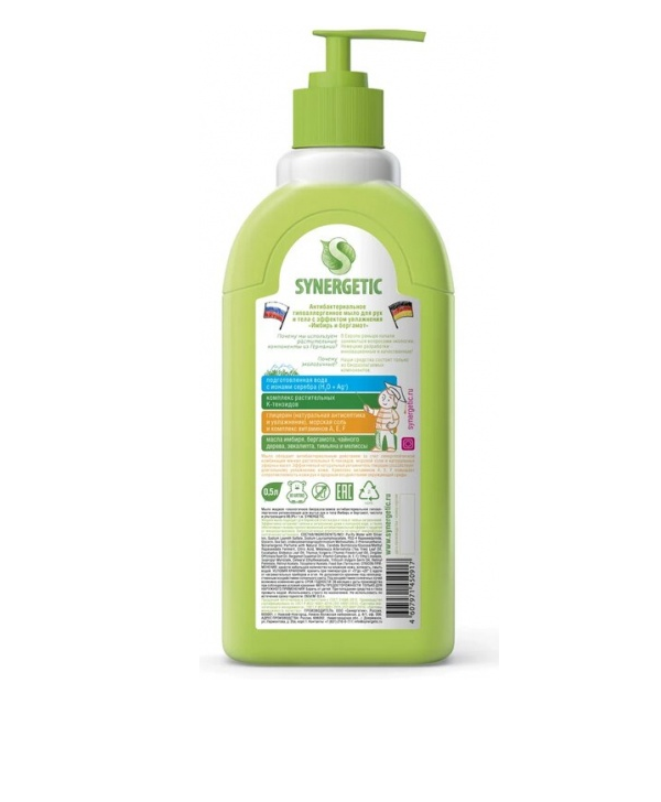 Жидкое мыло Synergetic Имбирь и бергамот антибактериальное 500ml 4607971450917