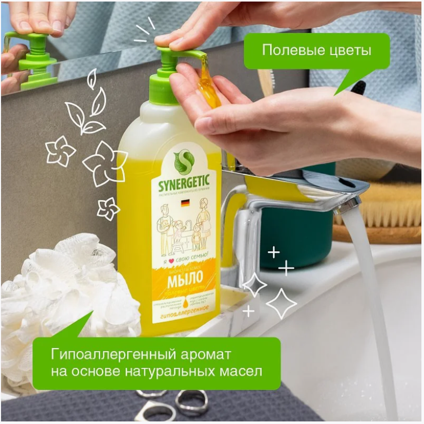 СохранитьSYNERGETIC гипоаллергенное мыло 0.5 л Полевые цветы биоразлагаемое интересное: