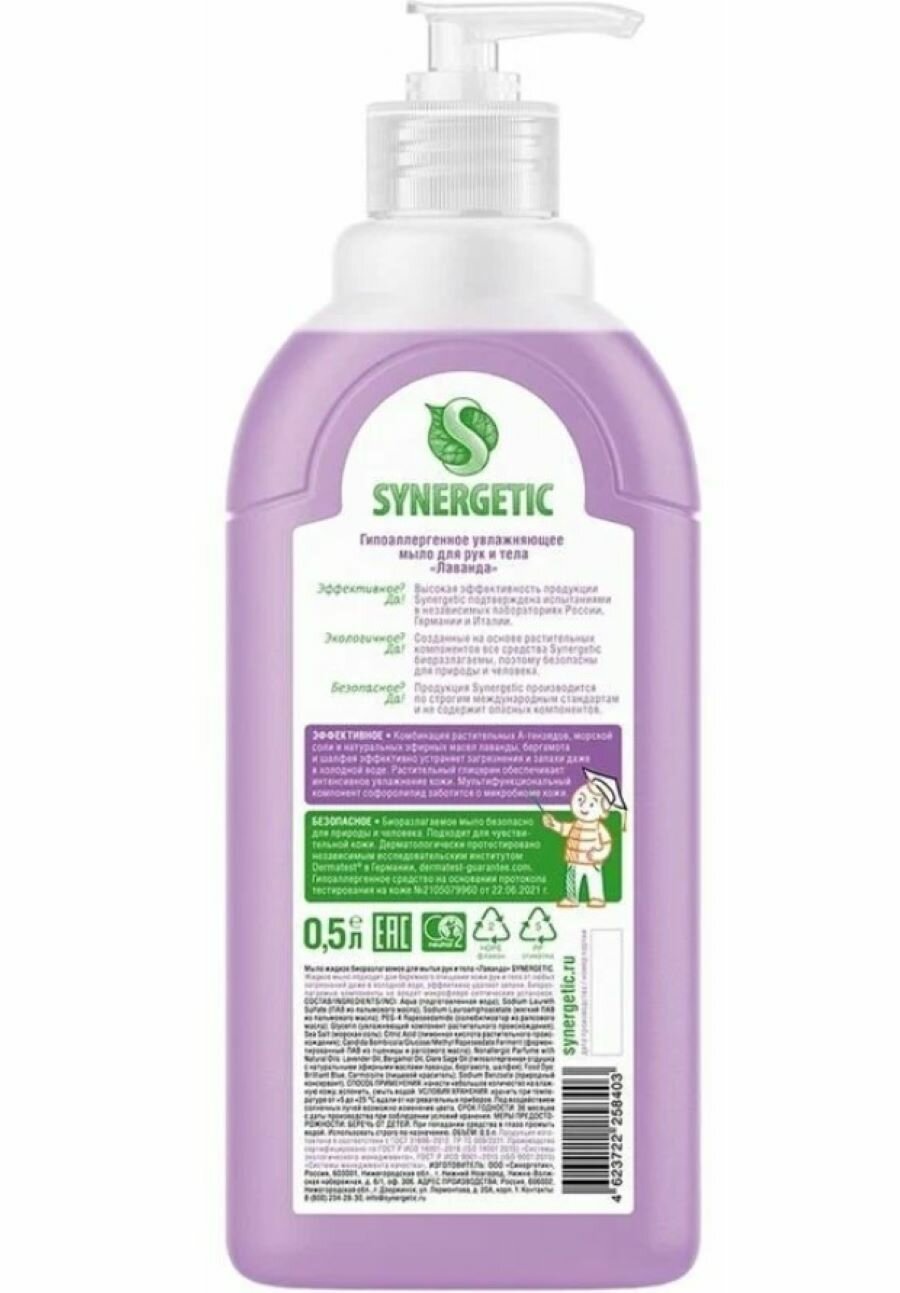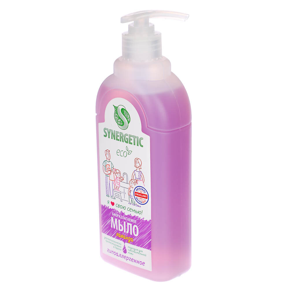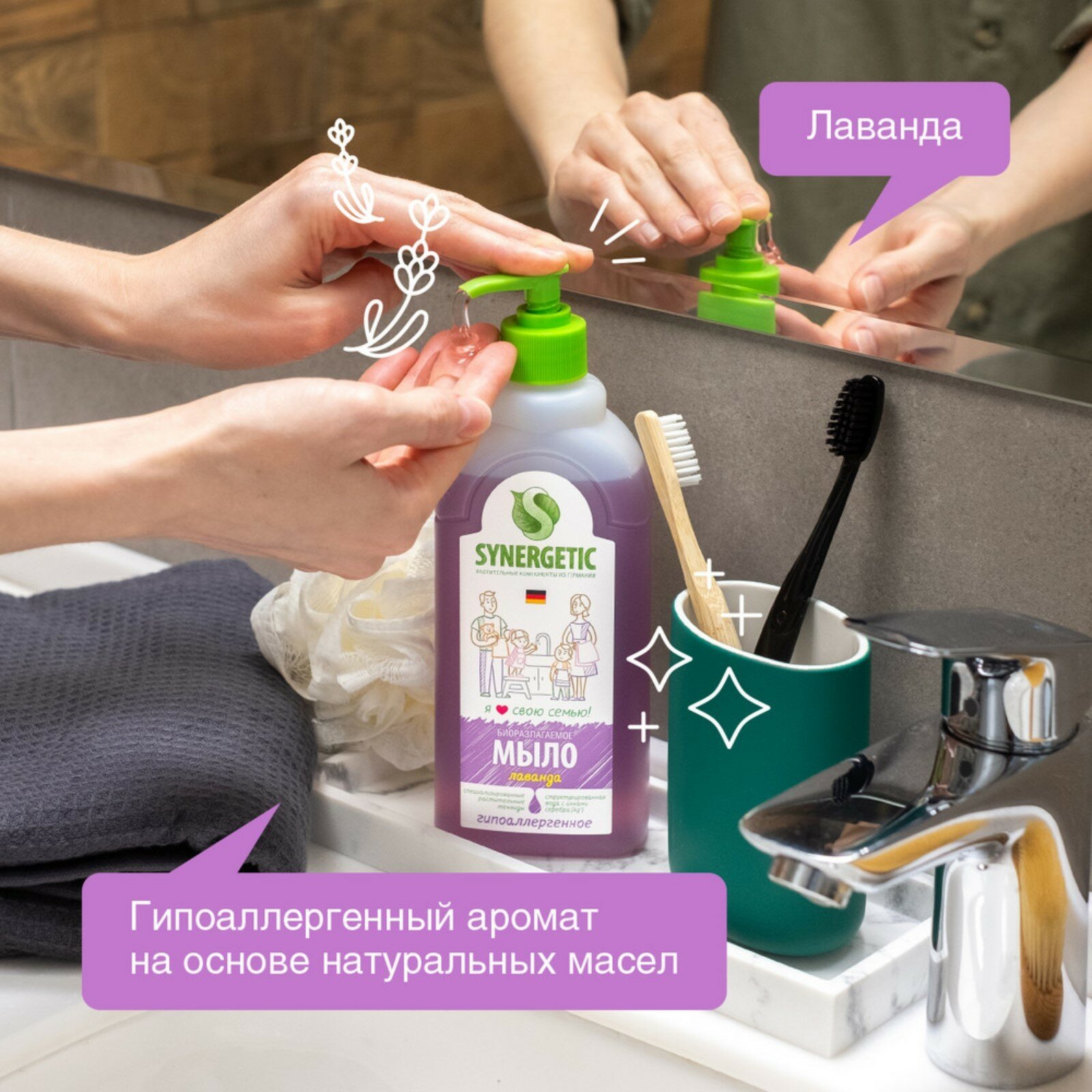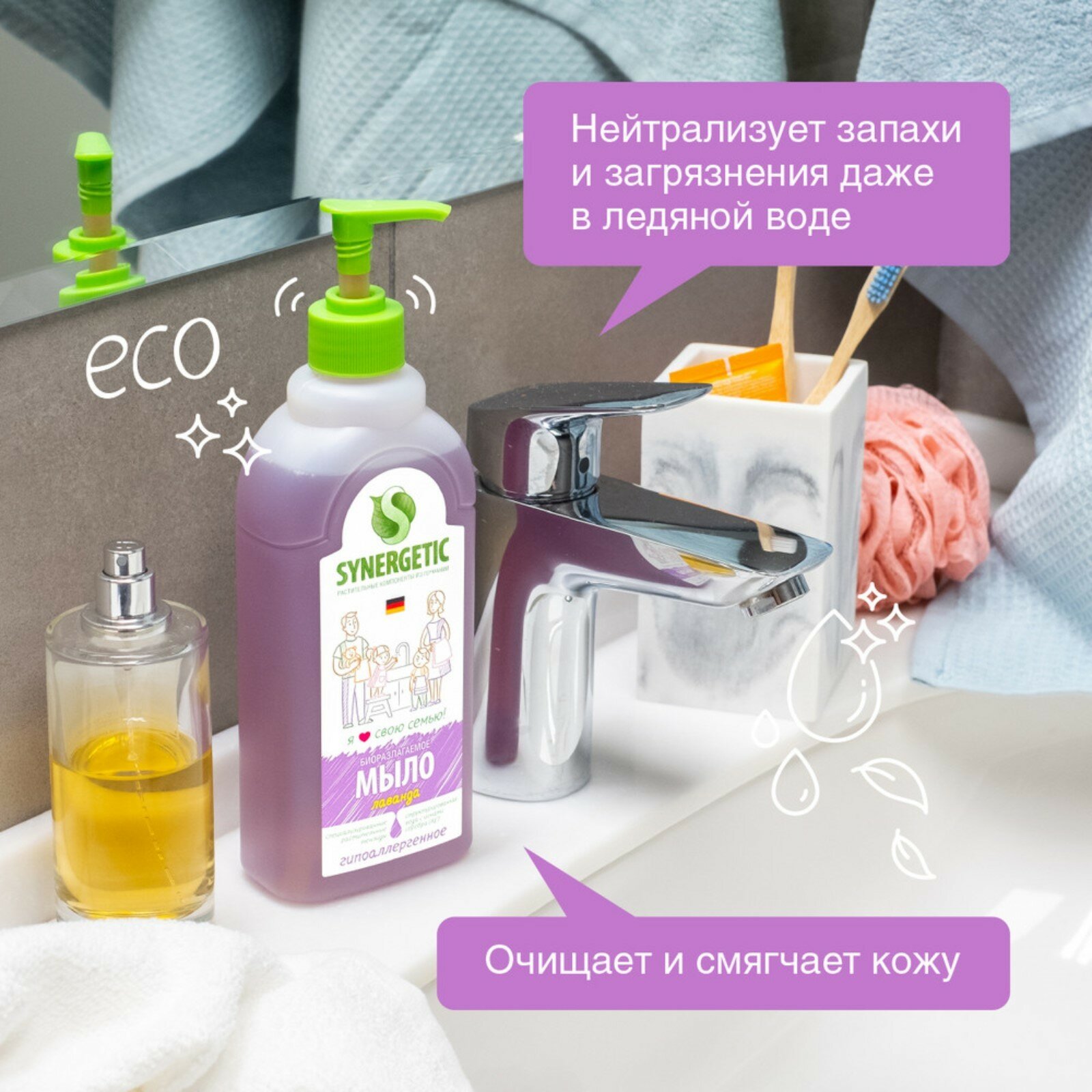 Купить Мыло жидкое SYNERGETIC Лаванда, гипоаллергенное, увлажняющее, биоразлагаемое, п/б, дозатор, 0,5л