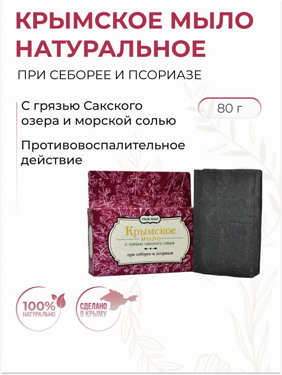 Купить Крымское твердое мыло с грязью Сакского озера при себорее и псориазе, 80 г