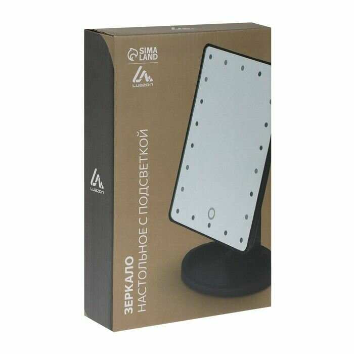 Зеркало Luazon KZ-06, подсветка, 26.5×16×12 см, 4хАА, 22 диода, сенсорная кнопка, черное (1шт.)