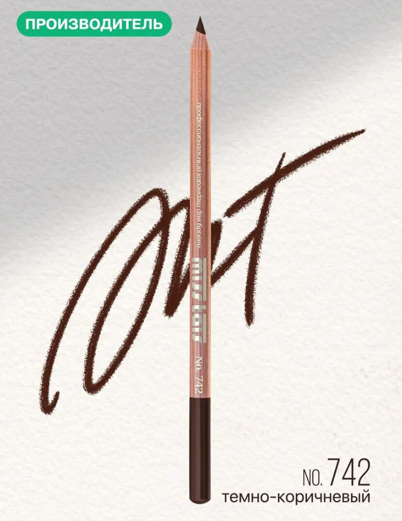 Miss Tais Карандаш для бровей 742 Темно-коричневый, 1шт.