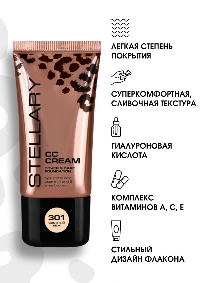STELLARY СС-крем для лица, 25 мл, 301 Светлый бежевый