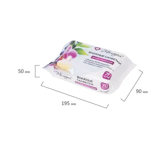 Салфетки влажные 70 шт., мелодия, антибактериальные, 129897 (цена за 1 ед.товара)