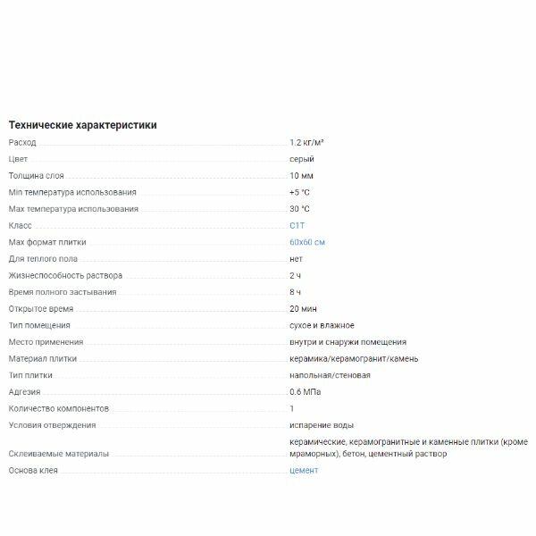 | Отзыв: | К бетонному основанию липнет хорошо, через 5 минут плитку не отлепишь, доволен. |