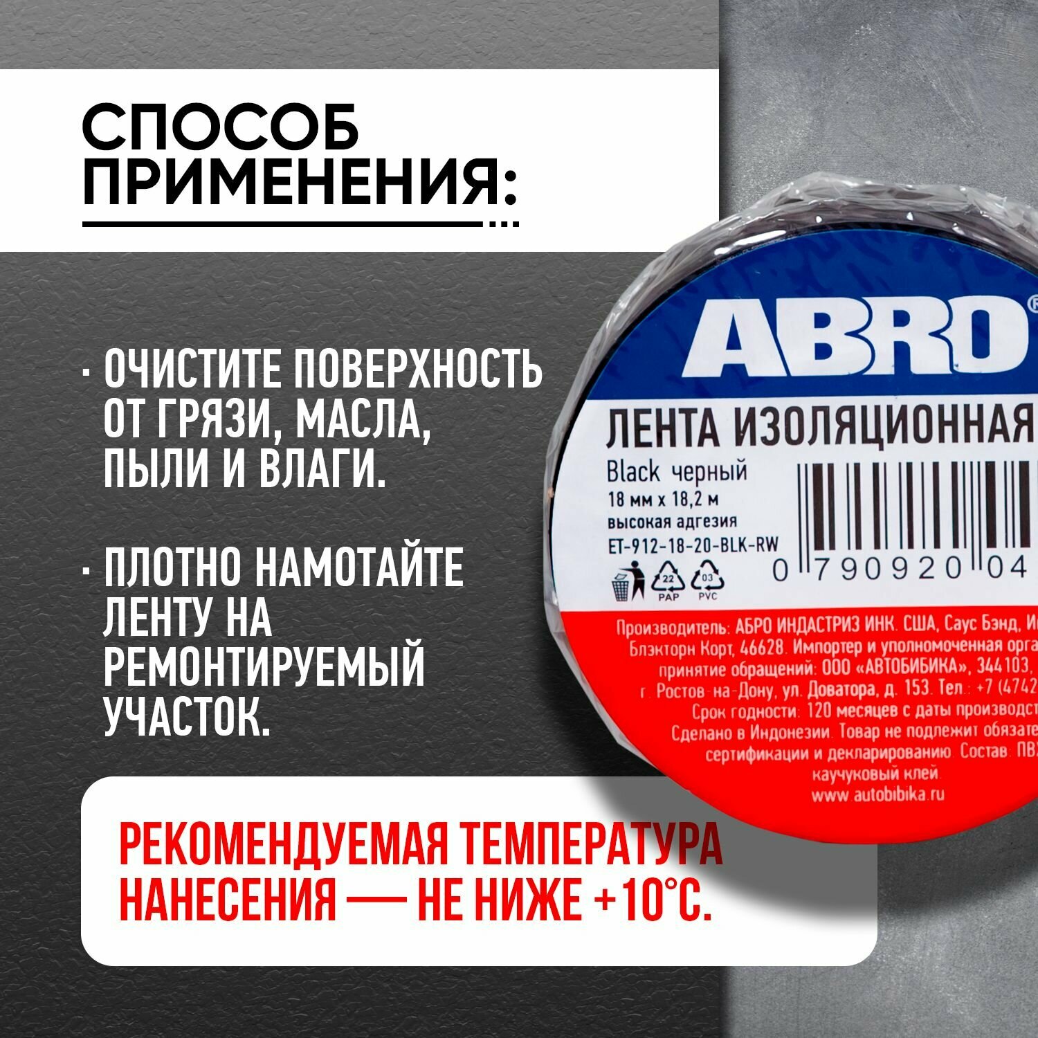 Изолента ABRO ET-912-18-10-BLK-RW