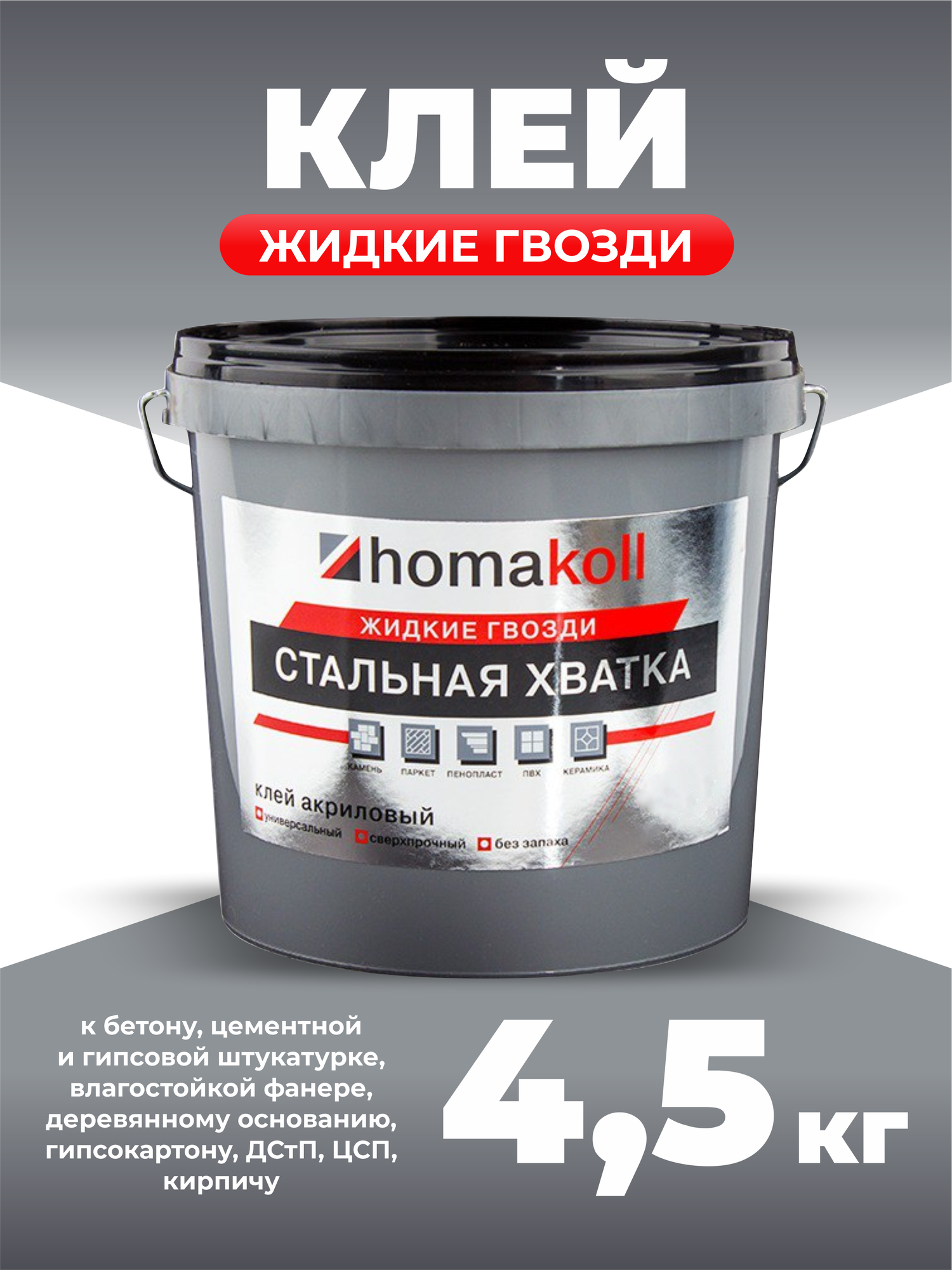 Универсальный монтажный клей Homakoll жидкие гвозди "Стальная хватка", 4,5 кг