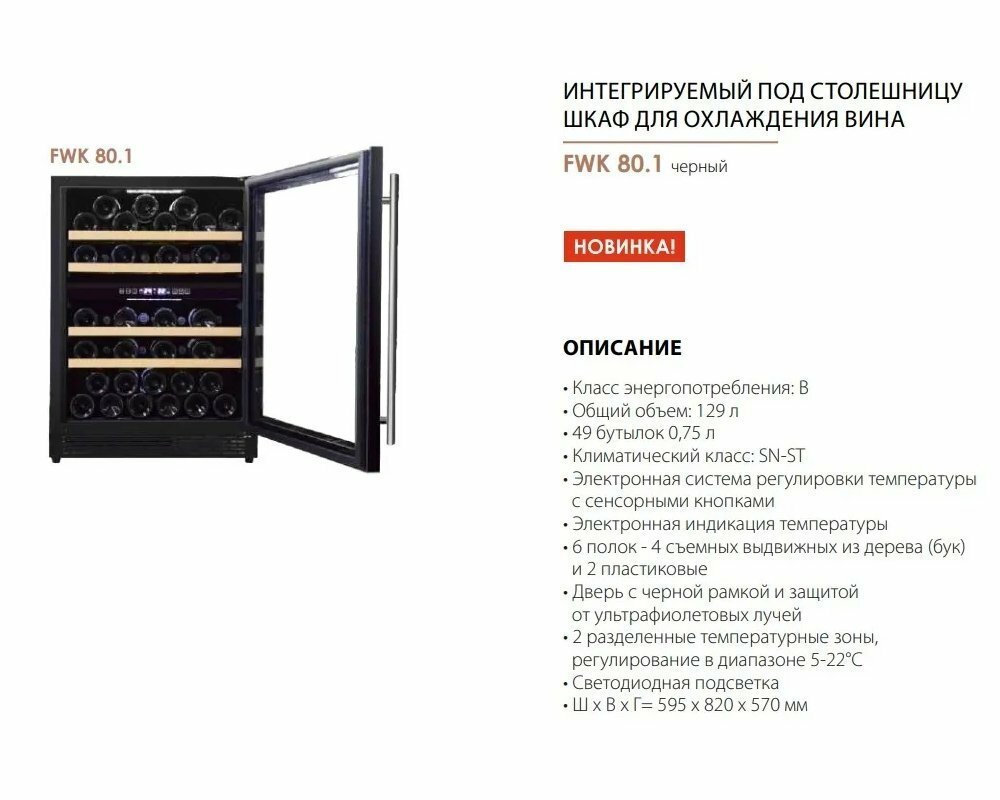 Встраиваемый под столешницу винный шкаф GRAUDE FWK 80.1