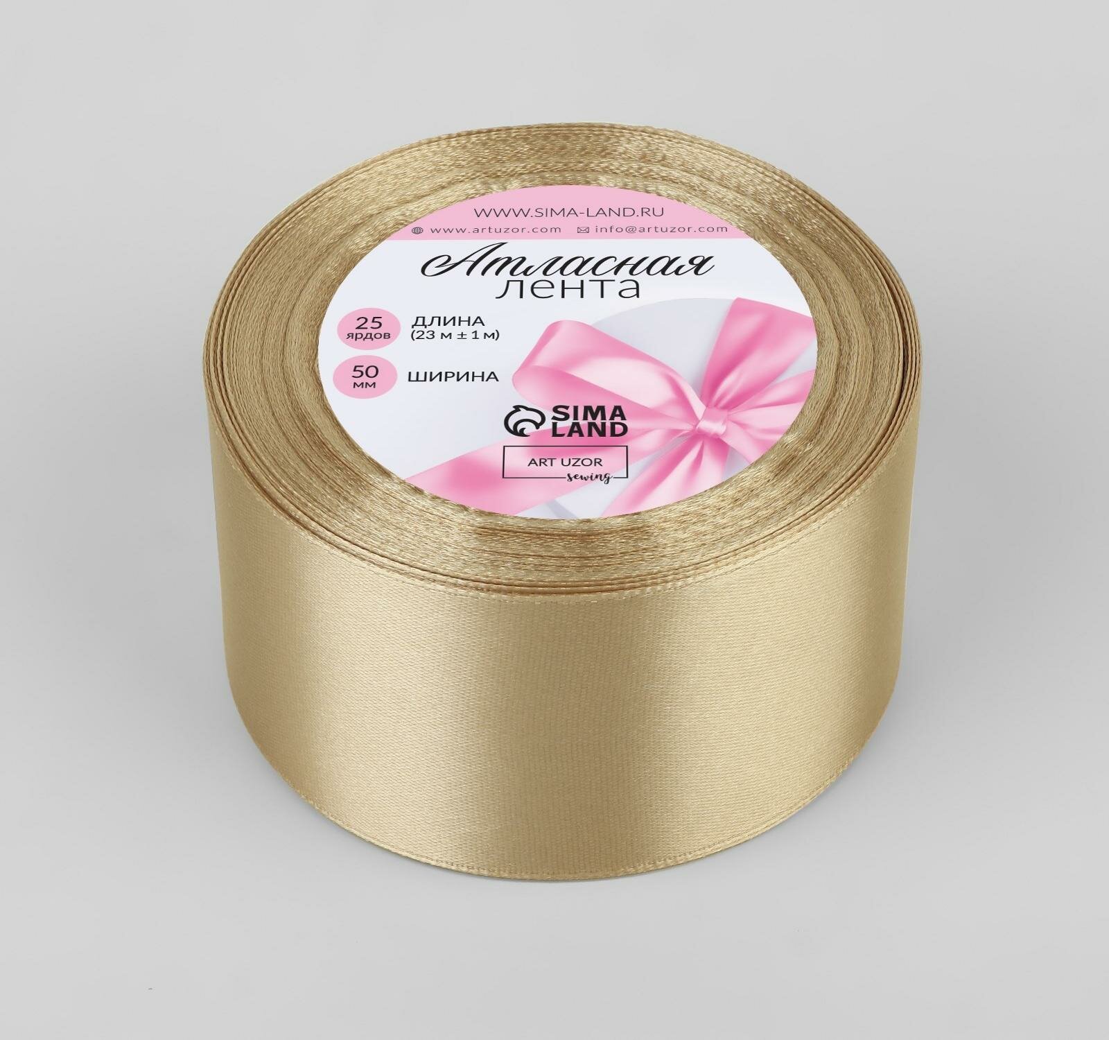 Арт Узор Лента атласная, 50 мм × 23 ± 1 м, цвет шампань №132