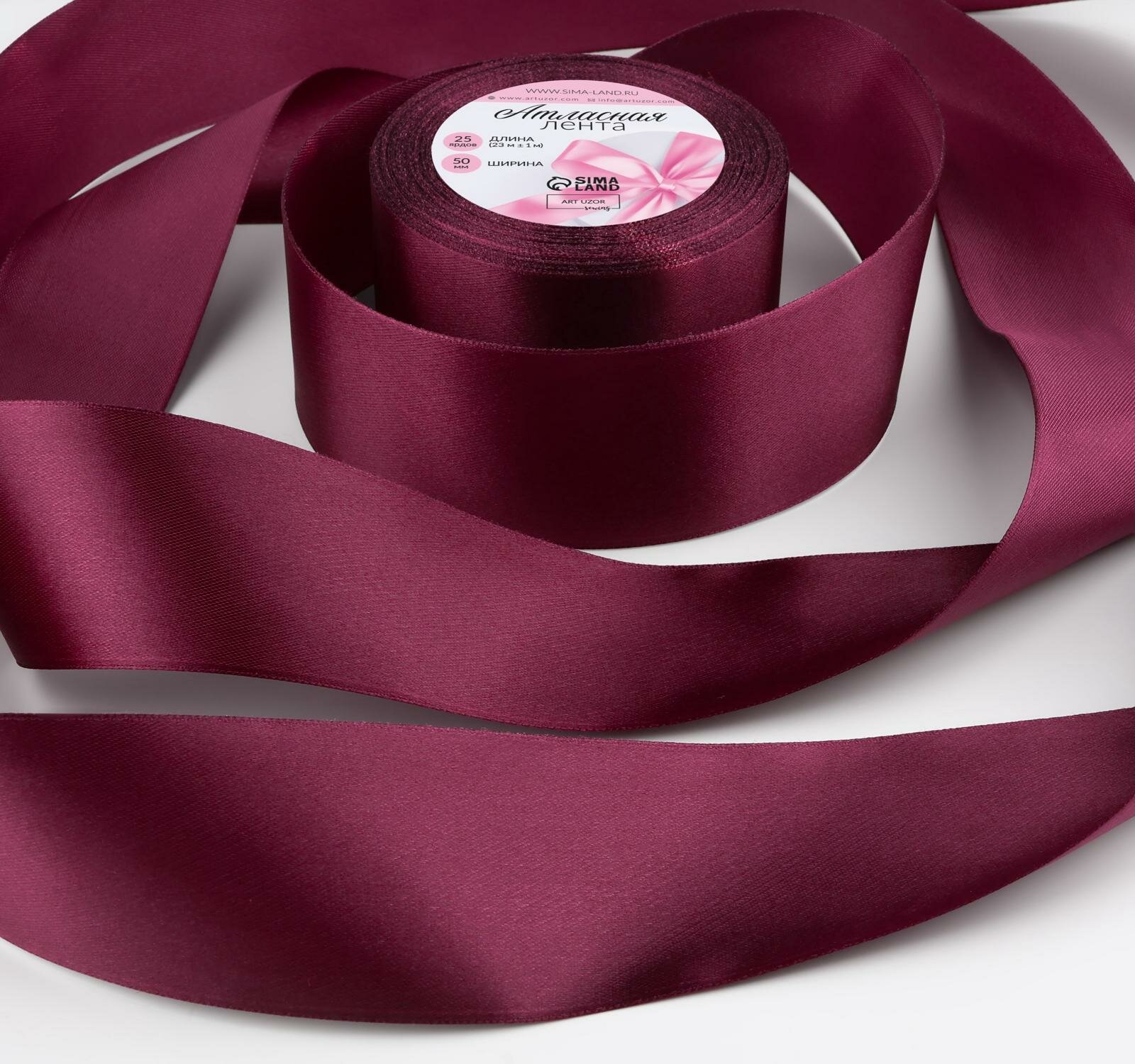 Лента атласная, 50 мм × 23 ± 1 м, цвет бордовый №156./ В упаковке: 1