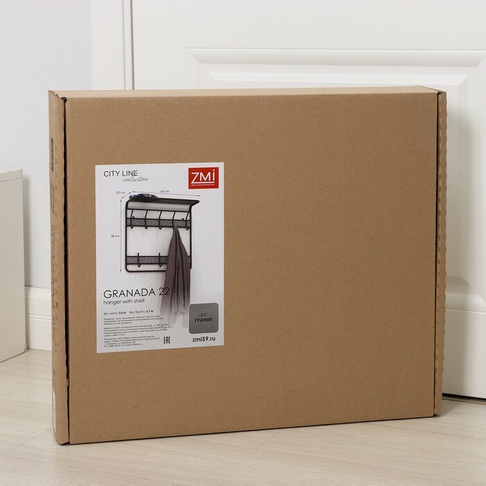 Вешалка с полкой "Гранада 22" 60х22х58 см Графит