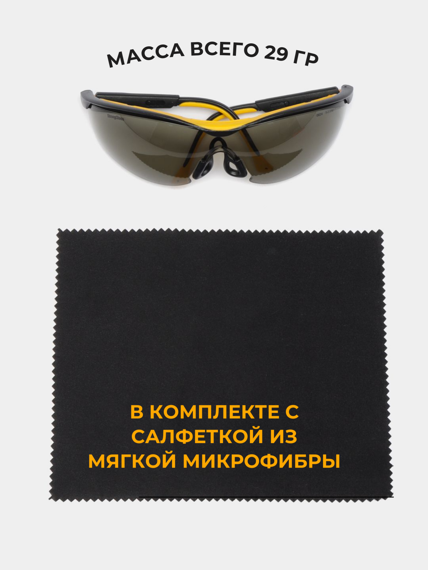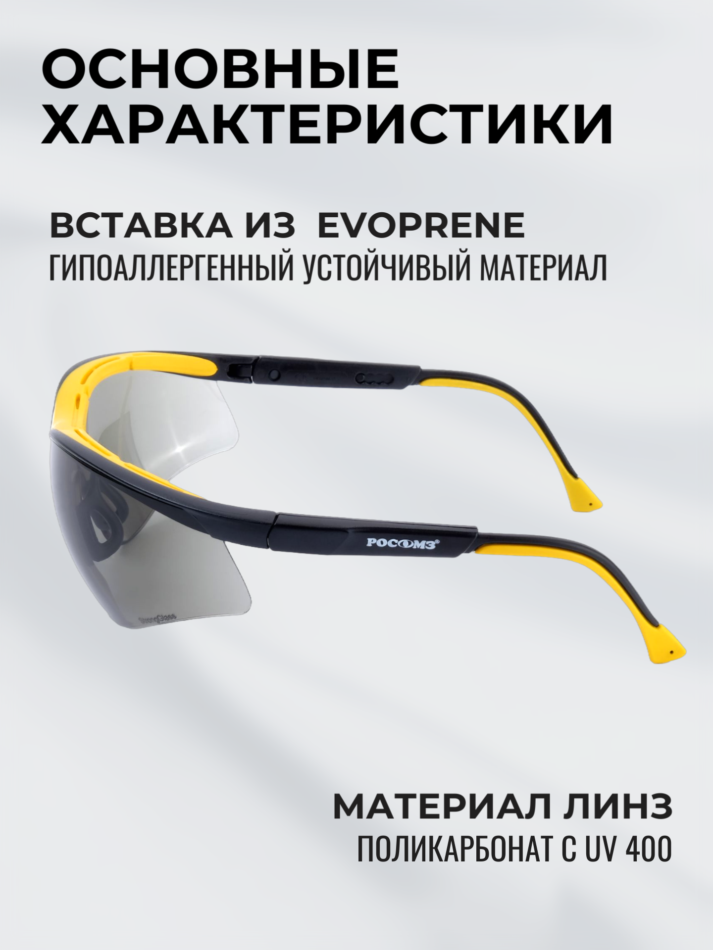 Очки защитные РОСОМЗ О50 Monaco StrongGlass, солнцезащитные, вставка от пыли и пота
