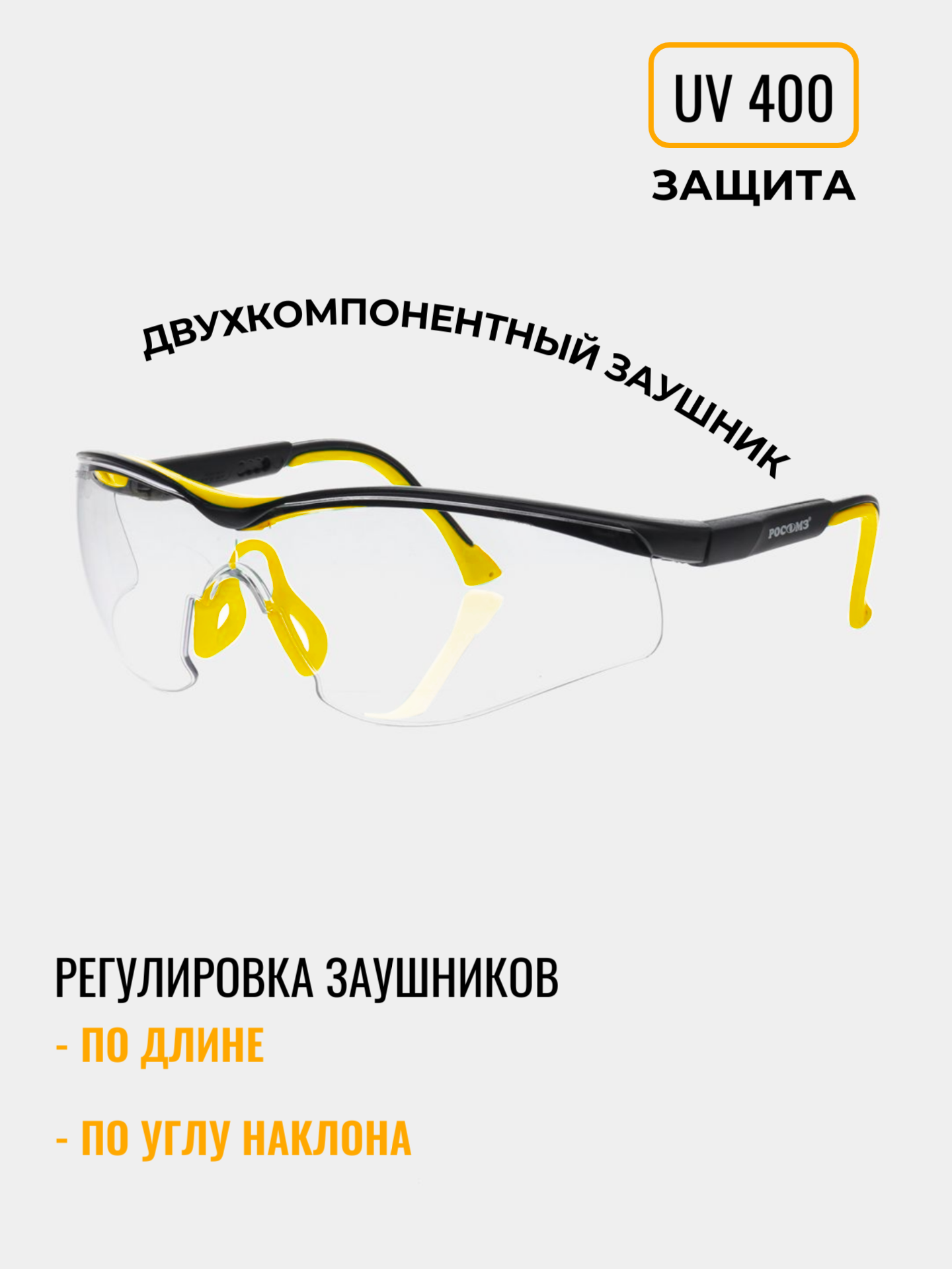 Очки защитные открытые РОСОМЗ О50 Monaco StrongGlass, прозрачные, регулируемые дужки, незапотевающее покрытие, поликарбонат