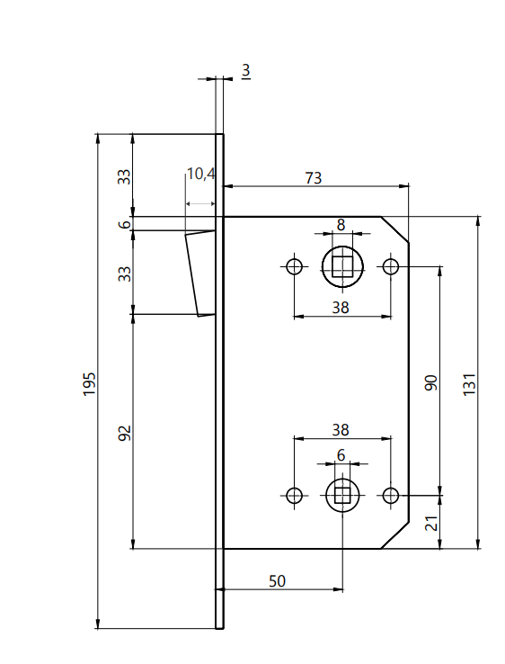 Замок врезной для двери магнитный Апекс 5300-M-AB (без ручек и сердцевины)