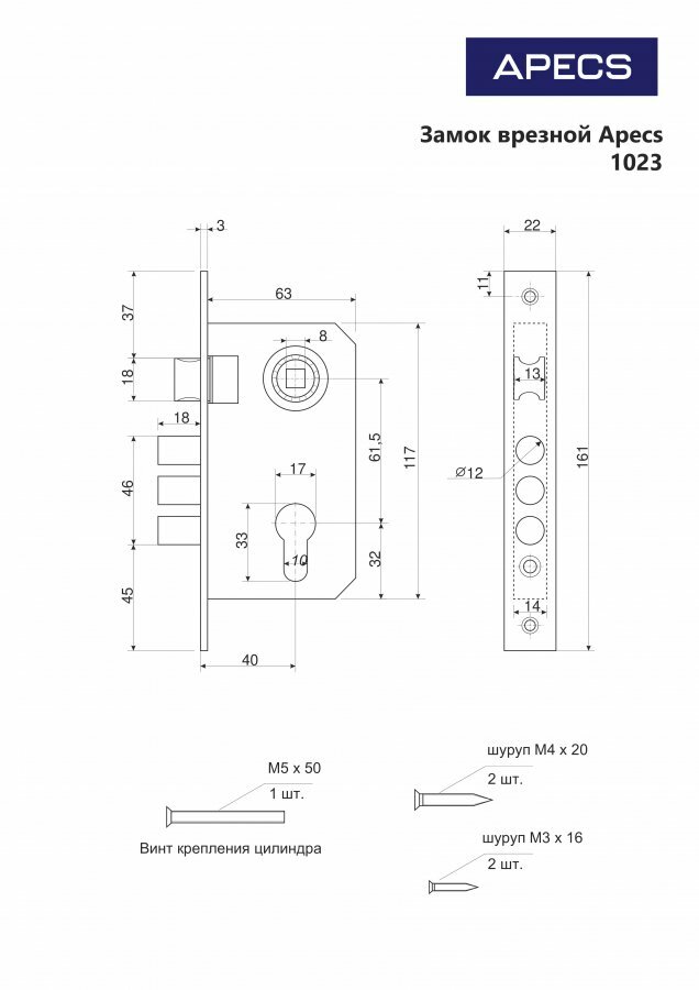 Замок врезной Apecs 1023/60-AC