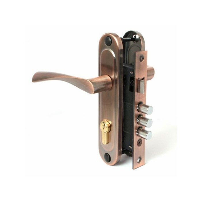 Замок врезной с ручками аллюр ЗВ4-1/55A AC ст. медь автомат для калиток (без цилиндр. механизма)