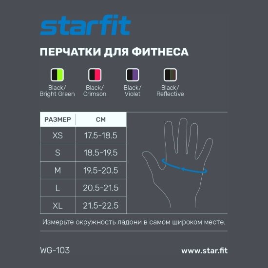 Перчатки для фитнеса STARFIT WG-103, черный/фиолетовый (S)