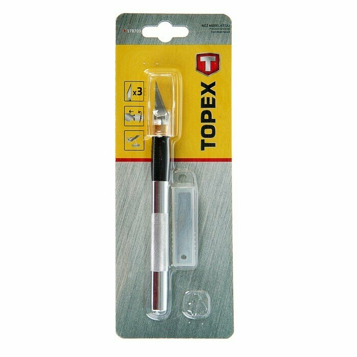 Купить TOPEX Нож моделиста, 3 лезвия, длина 155 мм, металлическая рукоятка 17B703