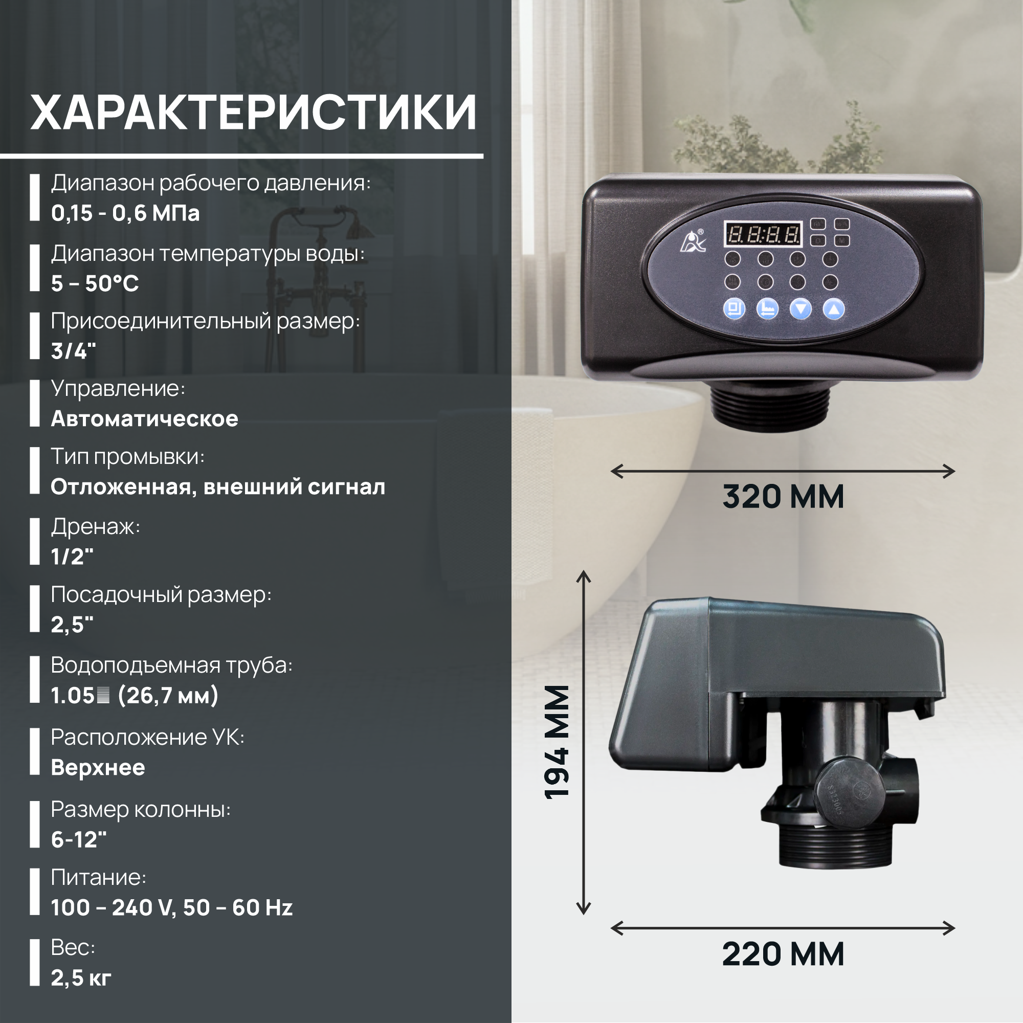 Автоматический клапан управления Runxin TM.F65P3 для умягчения, 3/4", верхний дистрибьютор в комплекте