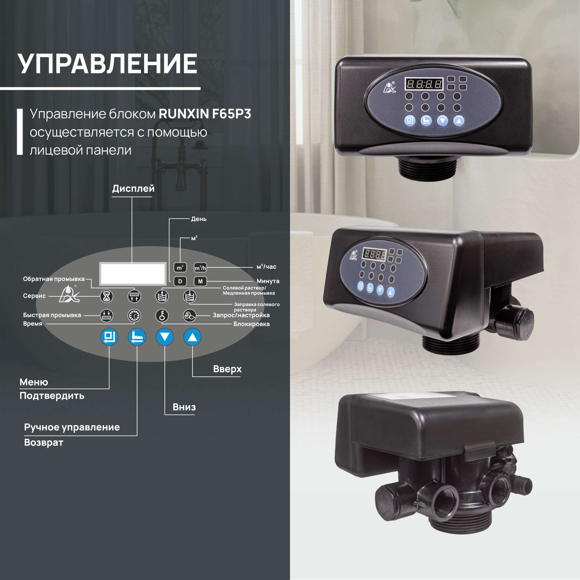 Блок управления RUNXIN TM. F65P3 - умягч. с в/сч, до 2,0 м3/ч