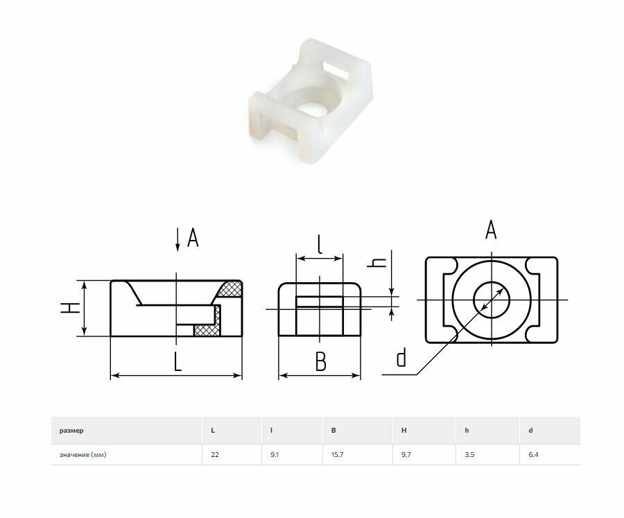 Площадка под хомуты, монтажная под винт Fortisflex ПМО 22х16 мм, белая, 100 шт