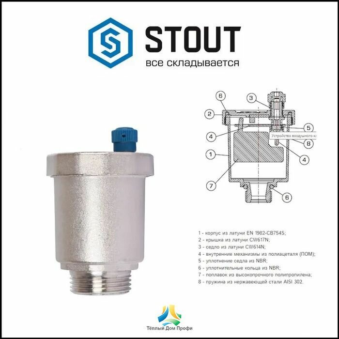 Воздухоотводчик автоматический stout вертикальный 1/2