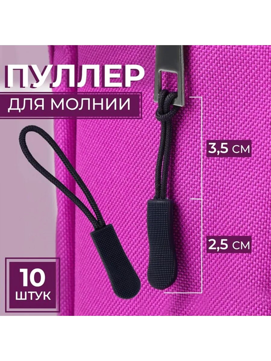 Пуллер для молнии, 2,4 см, 6 × 0,8 см, 10 шт, цвет чёрный