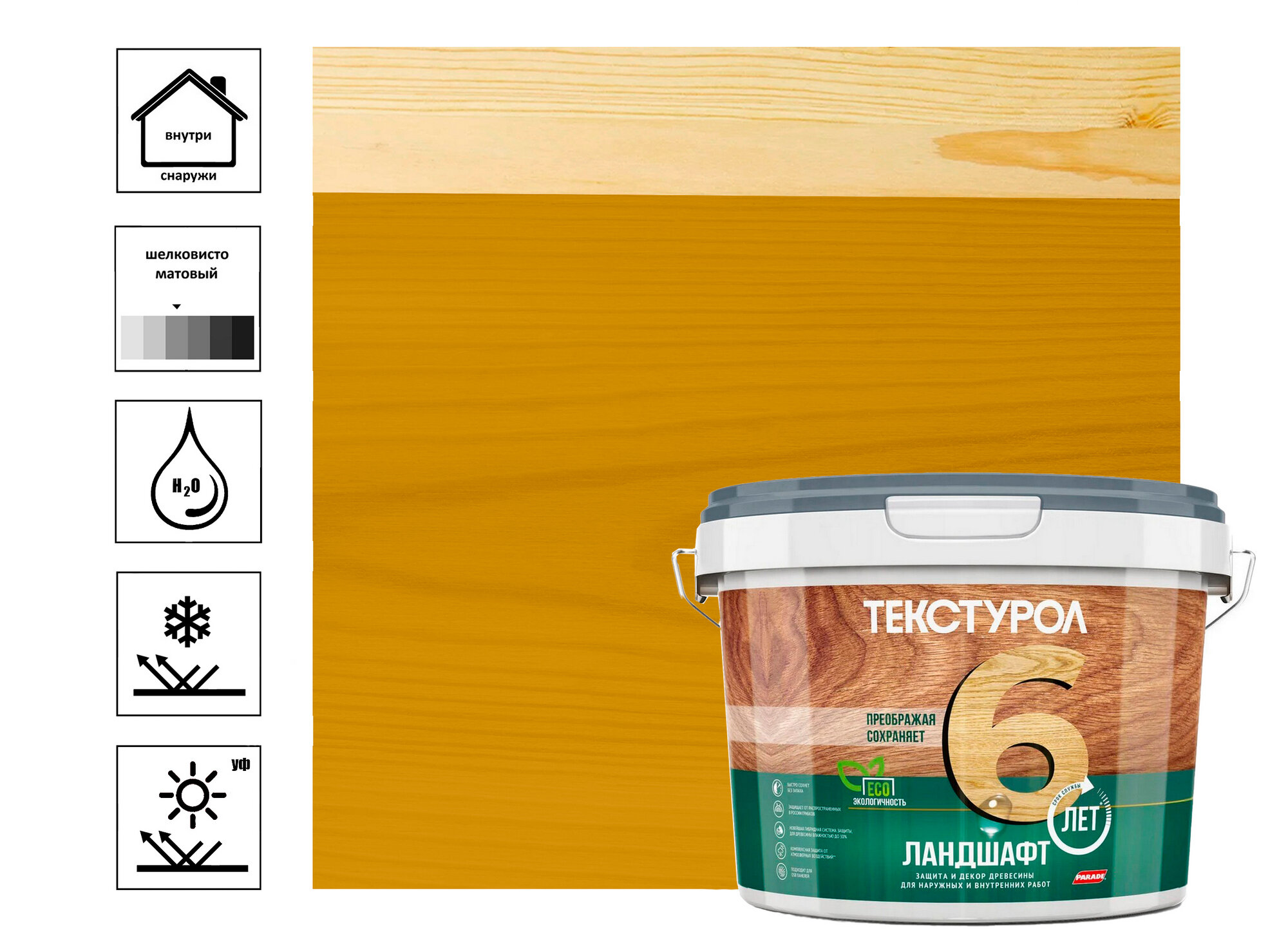 Защитное покрытие для древесины Ландшафт Текстурол 9 л сосна шелковисто-глянцевая