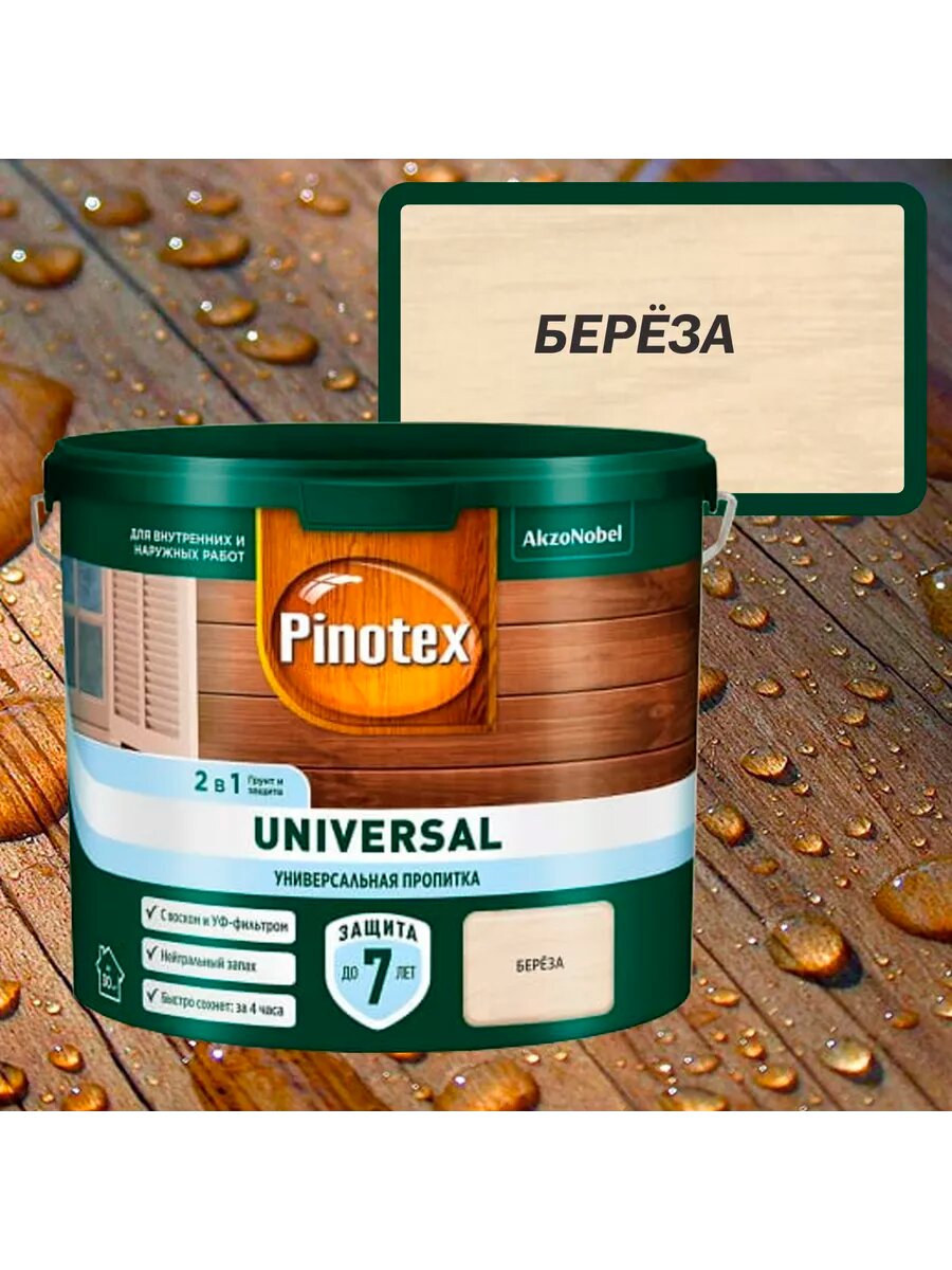 Пропитка Универсальная Pinotex Universal 2 в 1 2.5л Береза Полуматовая на Водной Основе для Защиты Древесины до 7 Лет / Пинотекс Универсал.