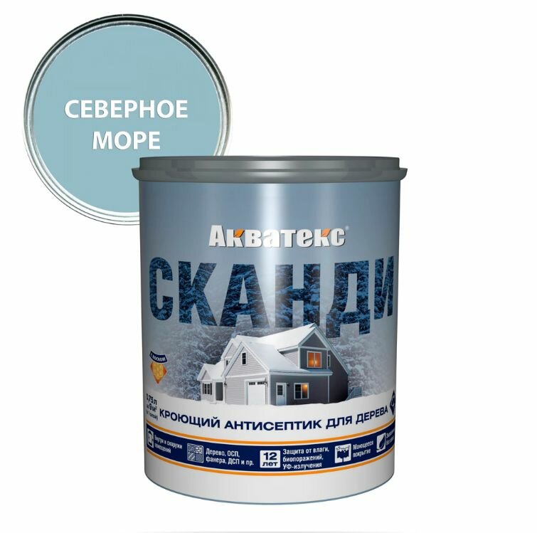 Купить Антисептик для дерева Акватекс Сканди 65104, кроющий, полуматовый, 0,75 л, северное море