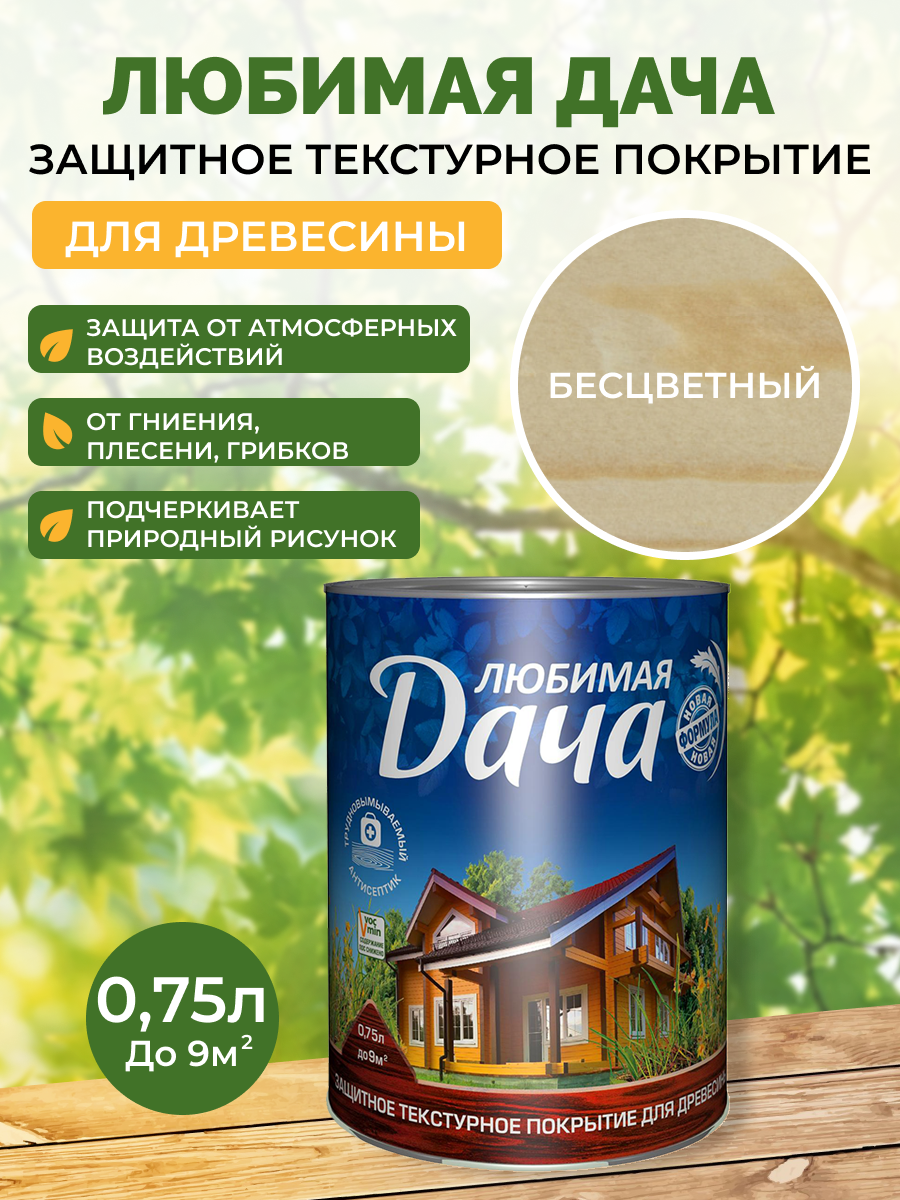Защитно-декоративное покрытие для древесины Любимая Дача (9л) бесцветный