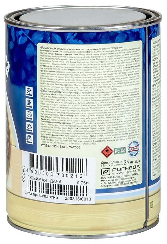 Защитно-декоративное покрытие для дерева Любимая дача, полуматовое, 0,75 л, сосна