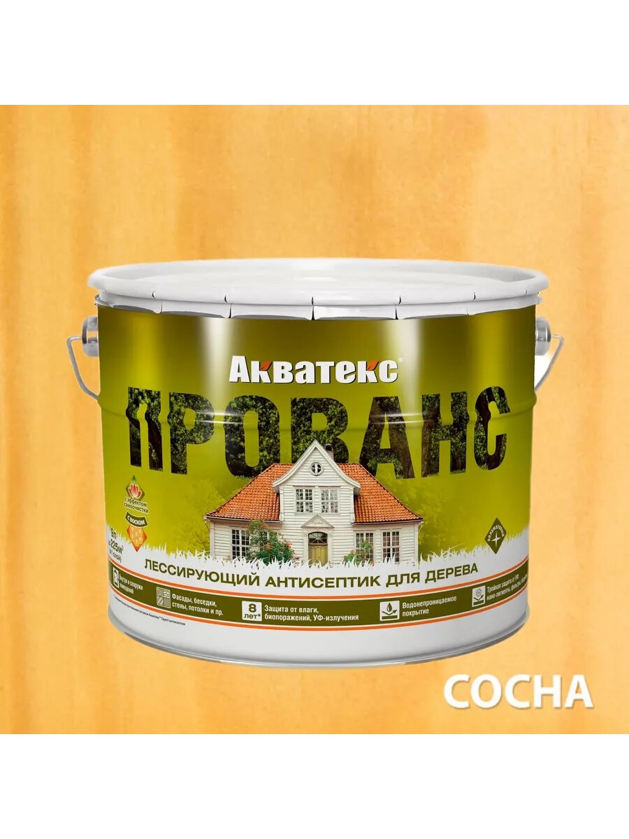 Купить Антисептик для дерева акватекс прованс лессирующий, полуматовый 9л сосна