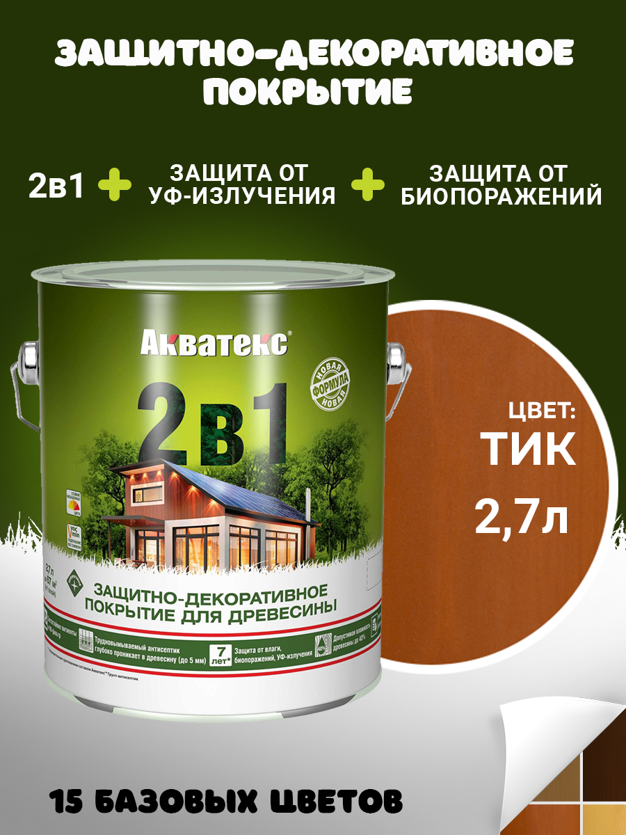 Купить Защитно-декоративное Акватекс покрытие для древесины, пропитка по дереву, 2в1, тик, 2,7 л