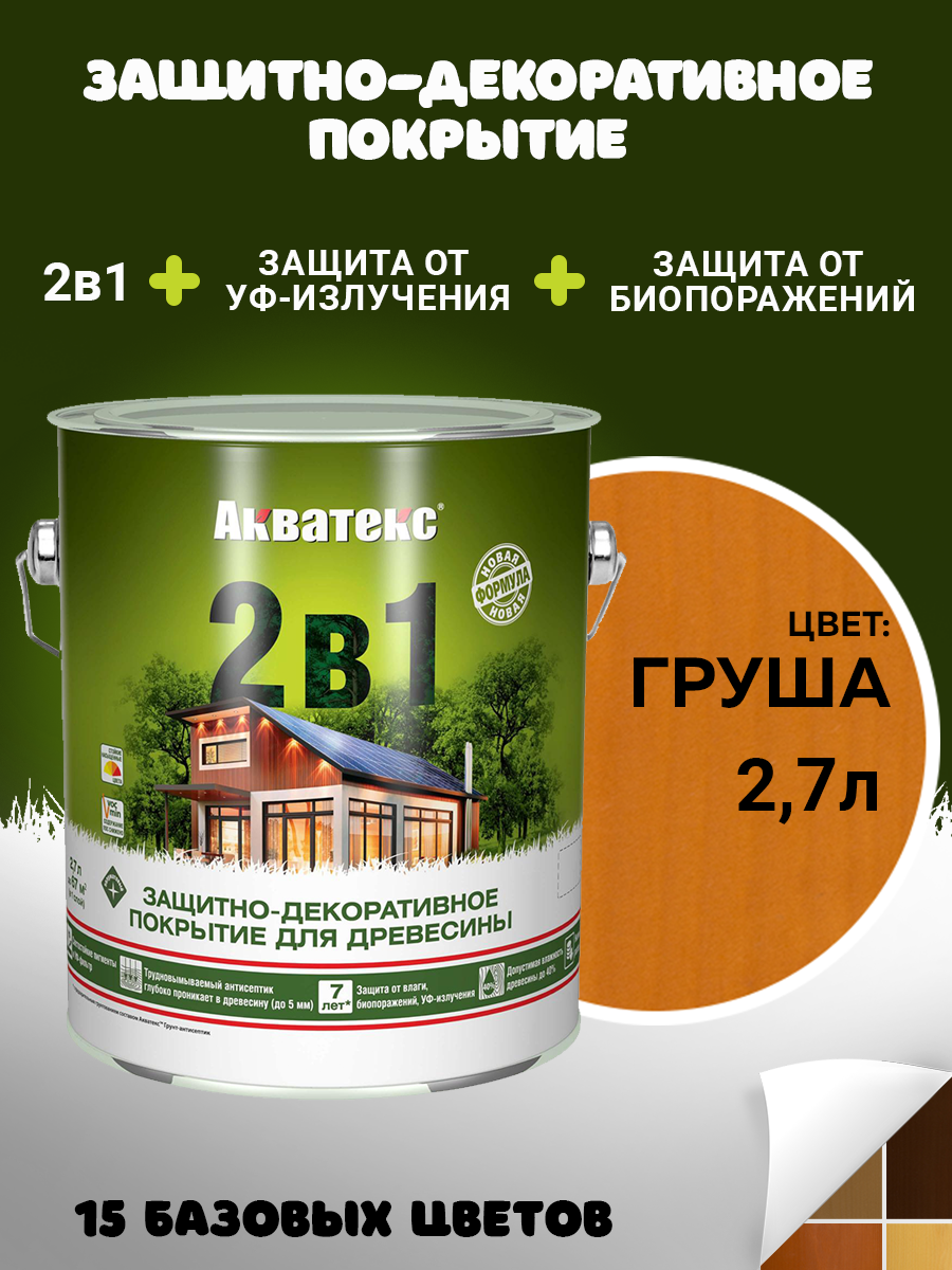 Купить Защитно-декоративное Акватекс покрытие для древесины, пропитка по дереву, 2в1, груша, 2,7 л