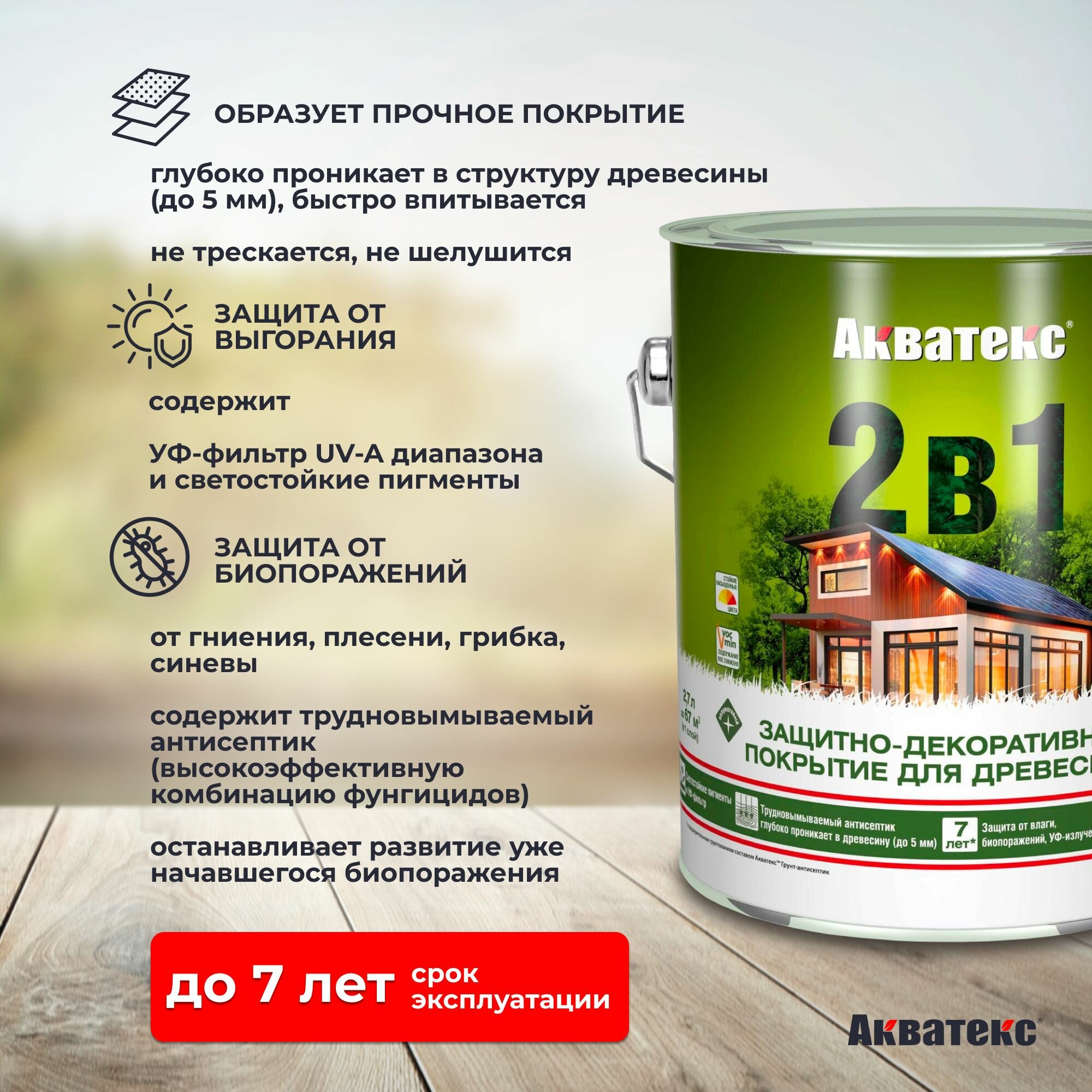 Купить Защитно-декоративное покрытие для дерева Акватекс 2 в 1, полуматовое, 2,7 л, бесцветное