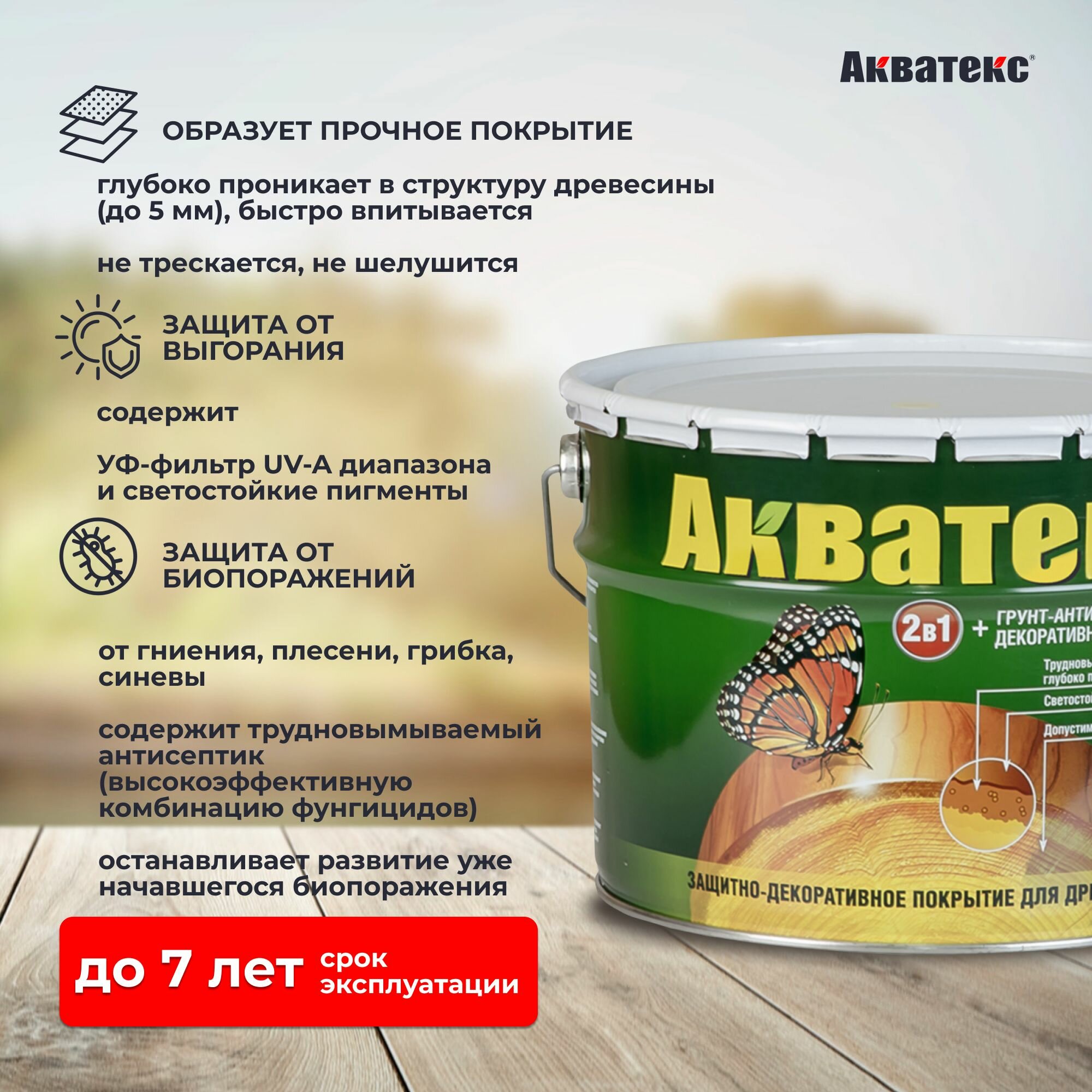 Защитно-декоративное Акватекс покрытие для древесины, пропитка по дереву, 2в1, сосна, 9л