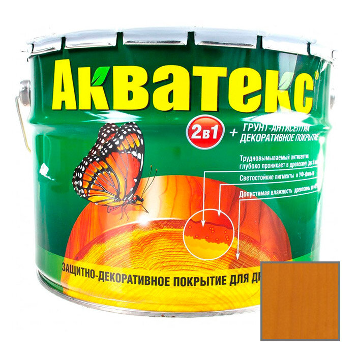 Акватекс 2 в 1 грунт-антисептик алкидный полуматовый лессирующий (тик, 10л)