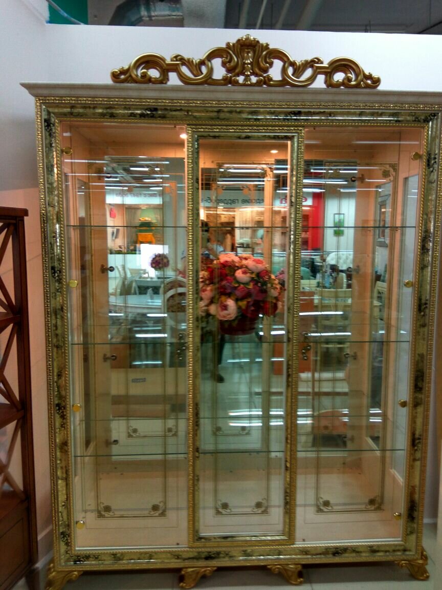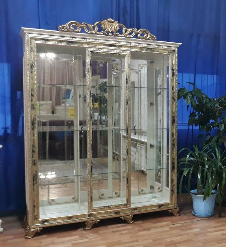 Витрина Катя, трехдверная, бежевая с золотистым глянцем, фабрики Диа Мебель, Россия. 166,5х46х22,2 см интересное: